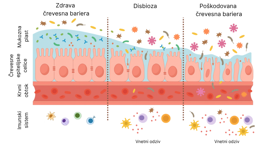 Zato je pomembno, da ohranjamo tako epitelij kot sluz v dobrem stanju. Če se poruši integriteta črevesne bariere, se poveča tveganje za nastanek lokalnih in celo sistemskih vnetij.